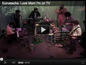 "San Francisco’s Eurostache are an improv collective of an optimum eight members, melding musicians of purely electronic inclinations with scatter-brained bass, experimental vocals, percussion, and circuit bending."